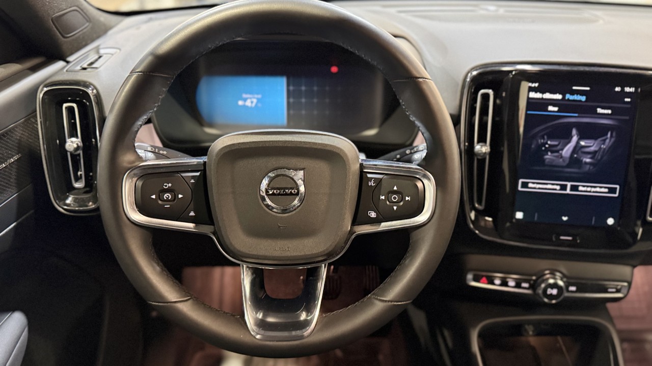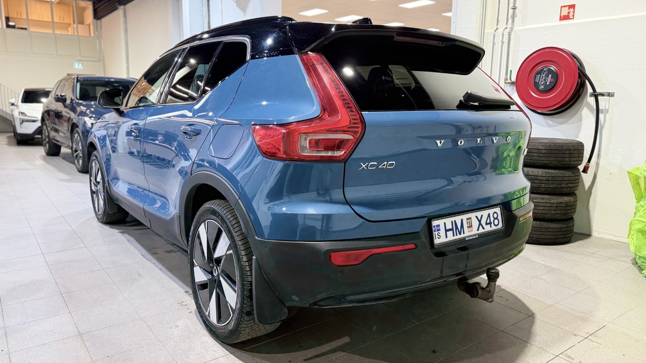 Flottur og vel búinn Volvo XC40 Ultimate P8. Fjórhjóladrifinn, alrafmagnaður og hlaðinn búnaði. Fjarstart með tímastilli á hitara, veglínuskynjari, 360° myndavél, hiti í stýri og sætum og margt fleira.